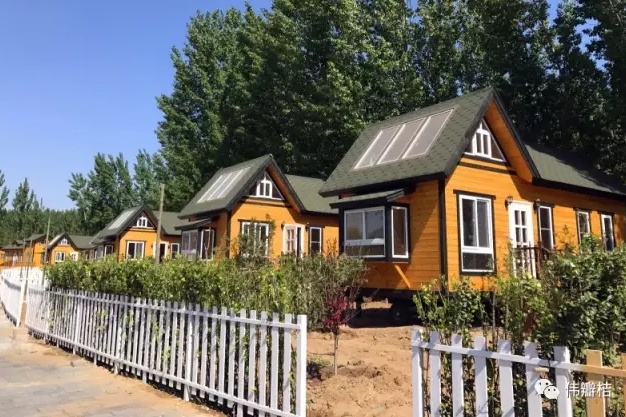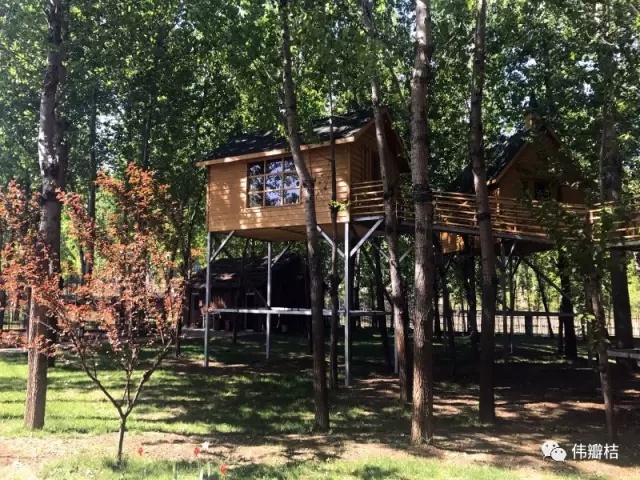 在地图中导航“胜景湖房车度假营地”就能寻到桔子所说的这片“丛林”。下高速后沿着潮白河畔的一条林荫小路一直走就能到达。“丛林”里有这样的“小别野”,可以居住。