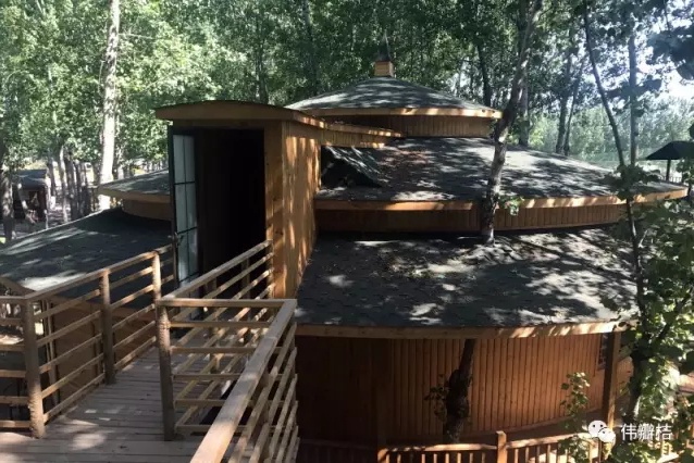 除了丛林里的木屋,营地最北侧、东侧还有一排排别院式的木屋。