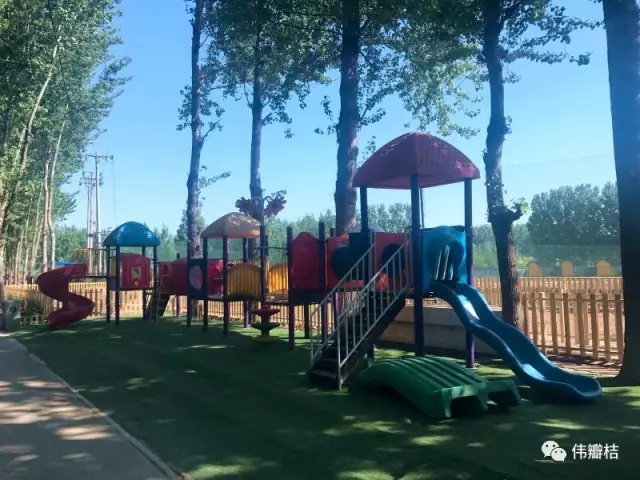 另外,营地还设有儿童游乐区,有滑梯、蹦床、乒乓球,也有让孩子体验生活的微型农场、养殖场。