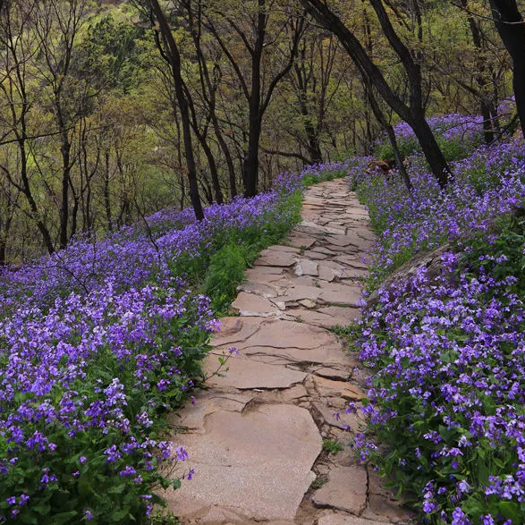 徜徉在登山路上,迎接您的是盛开的仙女花,一簇簇,一片片,随风摇曳,飘来阵阵花香。
