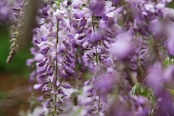 “紫藤挂云木,花蔓宜阳春,密叶隐歌鸟,香风留美人”。商务馆外及寺院周边的紫藤花相继开放,如云似霞的淡紫带着满满的幽香扑面而来,为古寺增添了一抹烂漫神秘的气息。那层层叠叠的花穗是由一朵朵精致的小花组成的,它们挨挨挤挤,竞相开放,馨香烂漫,楚楚动人。串串花絮悬挂于绿叶藤蔓之间,形成了一个个天然花廊。