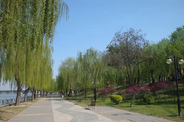顺义区潮白柳园西起俸伯桥,东至彩虹桥,全长2000米,面积9.6公顷,是利用防洪堤与河槽之间的平台实施建设,河滩景观得到改造提升。公园以柳树为骨干植物,五色碎石道路铺装、叠水广场等特色突出,2006年5月建成,免费开放,乘坐公交车915路、924路、947路可方便到达。