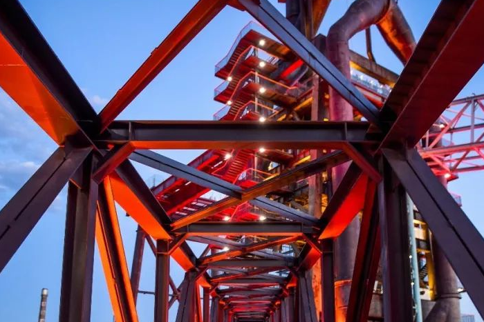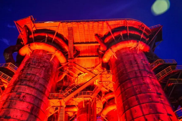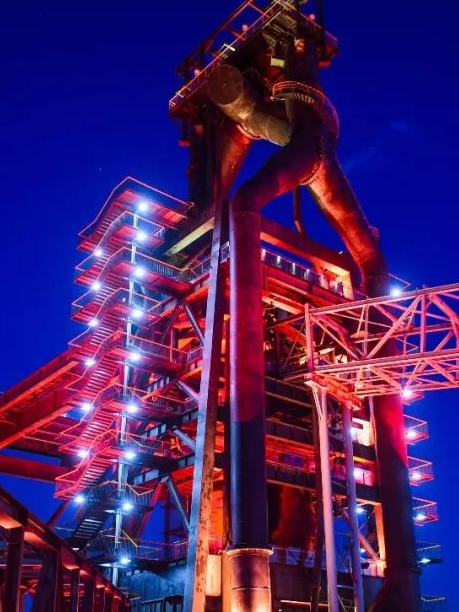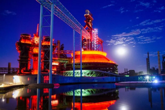 十五月下,三高炉通体点亮红色灯光,正像是炉中钢水的颜色,有如曾经生产时的热火朝天。