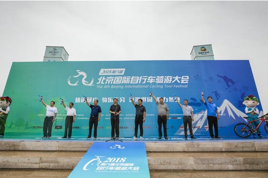 6月9日,2018第八届北京国际自行车骑游大会在延庆激情开赛,来自世界各地的5000名自行车骑游爱好者 “骑”聚延庆,纵享骑游乐趣,助力冬奥世园盛会。