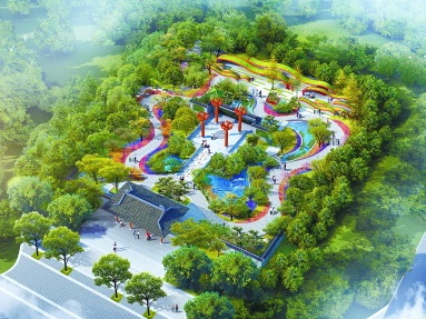 山水文韵景区将以秦岭渭河为底,打造山水空间,种植果树表现陕西的物产富饶,以秦岭四宝“熊猫、朱鹮、金丝猴、羚牛”作为植物绿雕与环境融合,展现特色的地域风貌。