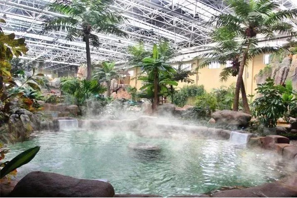 云仙温泉整体风格以热带风格为主,丛林密布,九曲回肠,静谧舒适。占地3000余平方米,温泉采自地下1500米,出水温度46℃,富含对人体有益的矿物元素。