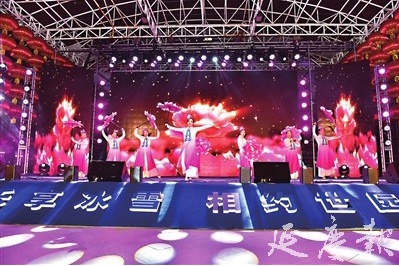 “相约美丽延庆、共享精彩世园”,蜿蜒曲折的万里长城、群芳吐艳的四季花海、压弯枝头的瓜果和郁郁葱葱的绿植,通过精雕细刻的冰雕艺术手法,无不展现出延庆人民期盼世园会的喜悦心情。
