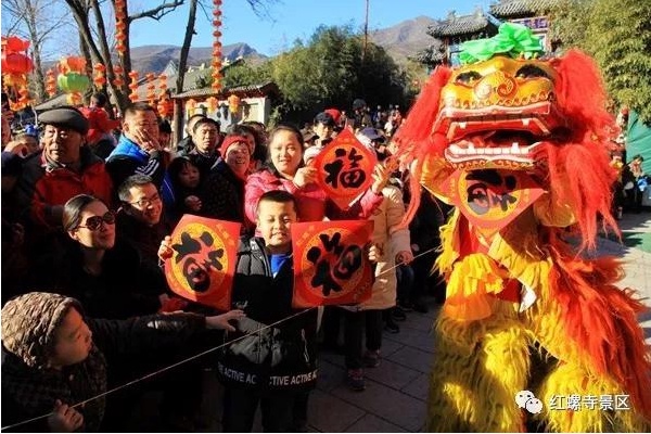 正月初一至正月初六举办的传统的“红螺寺祈福游园会”历史悠久、内容丰富,深受北京市民及广大游客的喜爱和认可。2019年“第二十五届红螺寺新年祈福游园会”以突出展示中国传统“福”文化为特点,推出系列丰富多彩的节庆活动。游客既可以体验独具一格的“五福贺岁”活动,又能够领略浓郁淳厚的传统民俗文化。