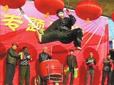 受场地、安全等因素影响,这种民间舞蹈项目渐渐淡出城区里的庙会。好在,乡间的舞台还在。