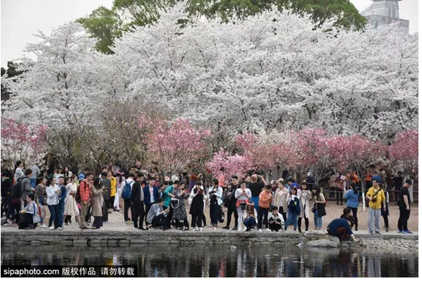 落英点点,樱花飘飘,一片,两片,恍惚间好似进入了人间仙境。白中透粉的花瓣星星点点,洒落于地,让人心生怜惜,不由得放轻脚步,缓缓踏行。偶尔抬眼一望,一根枝桠斜伸出去,点点樱花点缀其间,由坡上的粉墙黛瓦、飞檐翘角衬着,便生出几分说不清,道不明的禅意来。