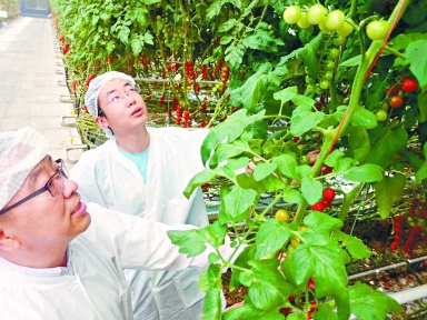 1985年农学院毕业的李朝阳成了一名农业技术员,每天在田间地头为农民推广种植技术,一干就是15年。2000年转行的他自己做了高标准的温室大棚,由于太超前销路不好没有成功。2015年底庞各庄宏福现代农业产业园创建,找到李朝阳担任经理,看中的正是他的专业背景和超前的理念。经过与荷兰的设备和技术提供方“斗智斗勇”,一年半时间从一片荒地到产出第一串番茄,现在5万平方米的温室年总产2700多吨,是传统栽培单产的近10倍。温室内没有一粒土,没有一滴农药,全靠营养液精准灌溉,节能30%、节水50%,纯绿色的生产过程产出纯绿色番茄。如今园区的技术团队全部来自国内专业院校,彻底摆脱了对国外的技术依赖。