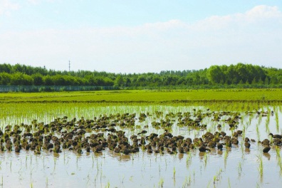 本报讯(记者 张小英)村头有一片开阔的稻田,一畦一畦,水草肥美。一群毛茸茸、灰扑扑的小鸭子,一会儿在青青的稻苗间穿梭,一会儿停下来吃杂草……这不是江南水乡,而是记者日前在顺义北小营镇前鲁村,箭杆河畔看到的有机鸭稻基地。
