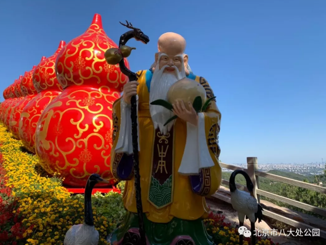 在京城最佳远眺位置——六处修建登高望远、健康长寿台,观景台附近设置八个长寿吉祥葫芦,让游客登台远望,摸长寿葫芦,祈福美好生活。