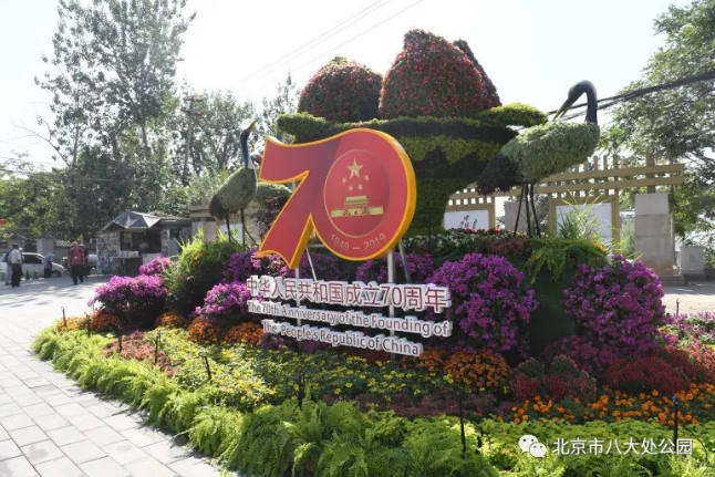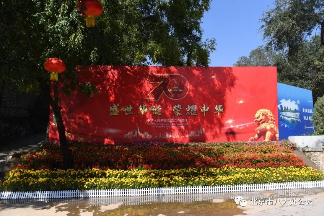 在公园门区广场,园艺师们精心制作出“ 祖国好”主题花坛,喜迎四方游客,向国庆献礼。