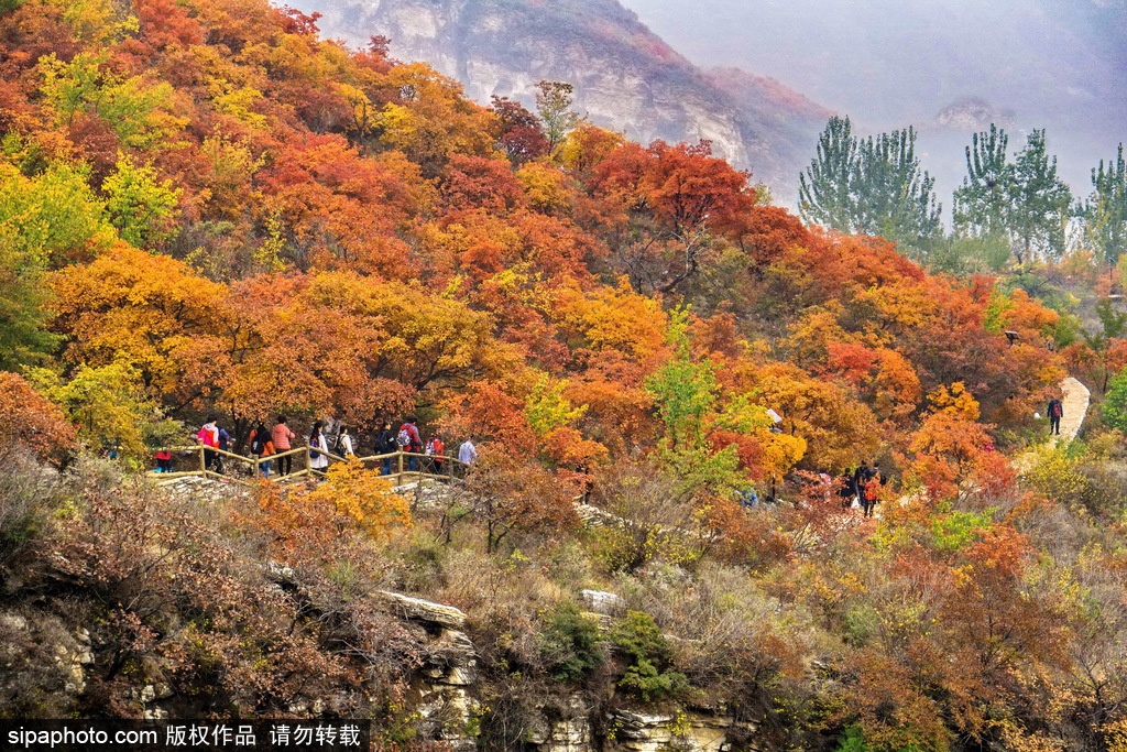 当南有苏杭,北有上方的上方山森林公园走进秋季,便如女子上了一层明净的妆容,而那山中的枫树、橡树、黄栌,便成为女子的眼,让世人得以看尽一山的明媚与娇羞。便如诗人描绘的那般:“一林秋叶染天工,夹绿编黄染面红,唯柏不随霜露改,依然翠滴冷霜风。”