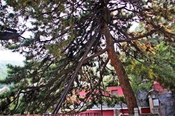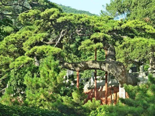 树龄已达千年,像一条盘龙横卧在此。恭亲王奕䜣提名“卧龙松”。顾名思义,“卧龙”者,侧卧之龙也,颇有卧龙的气魄。