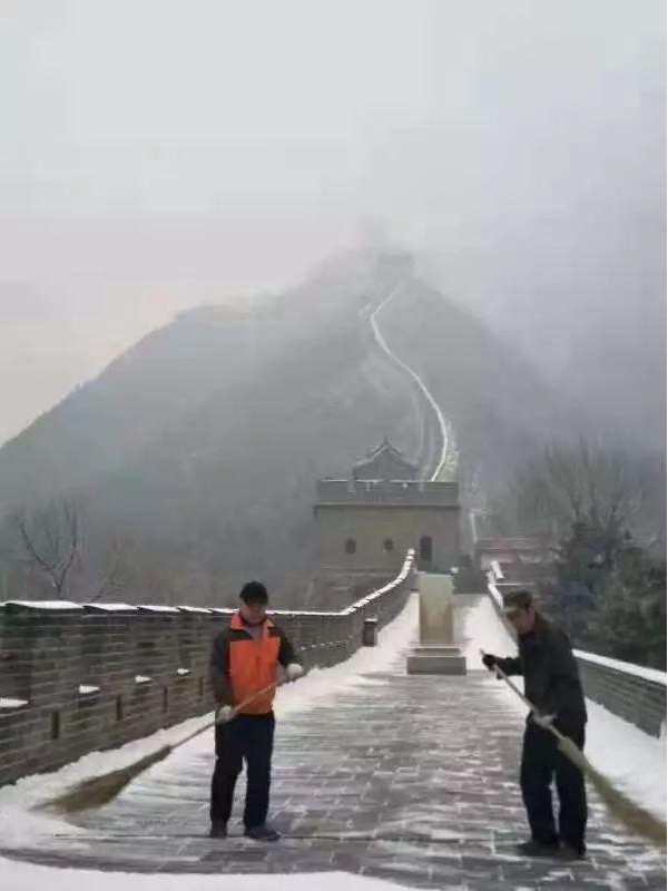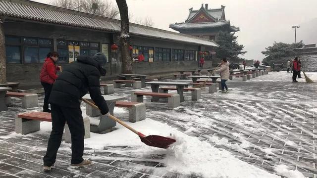 一大早,工作人员迅速组织力量清扫长陵、定陵、总神道、居庸关主次干道上的积雪,以便游客朋友们安心出行。