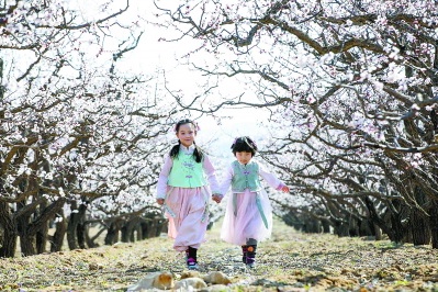 杏树枝上吐露出新鲜的嫩芽,朵朵白花,向人们昭告春天的到来,粉嫩的花瓣在春日暖阳的映照下,远远望去眼前是一大片粉白色的花海,这是属于延庆“杏花村”独特的景色。一阵微风吹过,花瓣缓缓飘落,游人步入其中,闻花海芳香,纷纷拿出手机合影留下最美的瞬间。