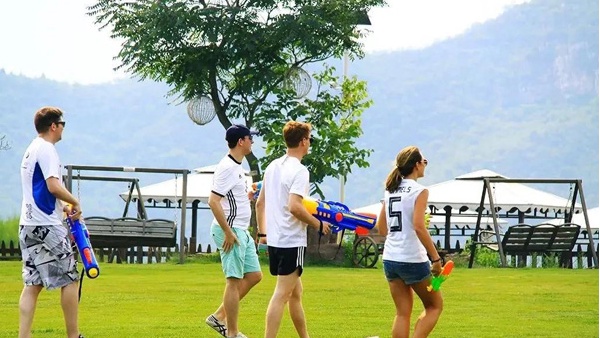 打水仗可不只是孩子们的专利,大朋友们一旦投入其间,玩得更是不亦乐乎。在攻防间,在水网中,激发出夏日的一份豪情和乐趣。