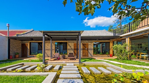 这里的院落根据不同的地形特点,有着别具一格的设计风格。质朴的院子不失时尚的格局,石砖灰瓦彰显文化气韵。走过石头铺成的小路,轻轻地推开木门,映入眼帘的是满眼的绿色,惬意自在。