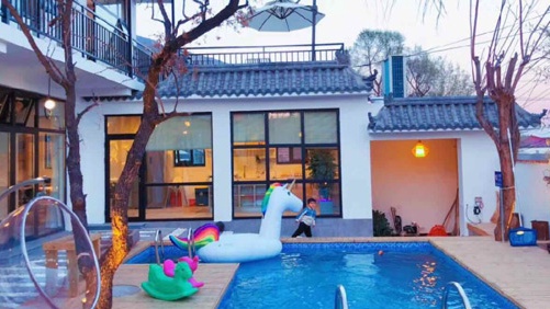 此象罔非彼向往,却依然可以满足你。闲来无事打牌遛狗、喝茶嬉水的田园生活,自带泳池,是夏天不错的选择。从凉亭中看庭院仿若置身画中,别有一番韵味。
