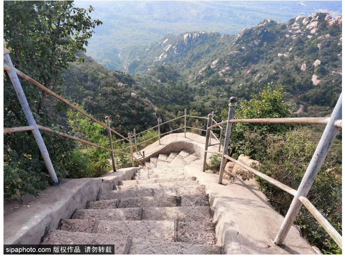 银山的高度虽然不高,但坡度陡峭,山势险峻,上山的台阶依山势而建,或盘旋弯曲,或直上直下,沿着台阶一路攀登,沿途不但有苍松翠柏,而且不知名的果子随处可见,虽然爬山的过程有些艰辛,但当游客成功登顶的时候,便可体会一览众山小的快感~