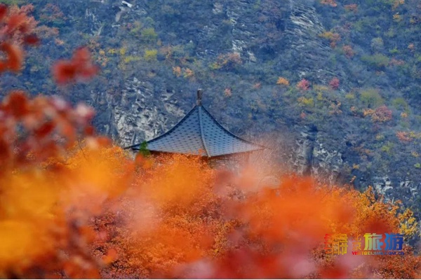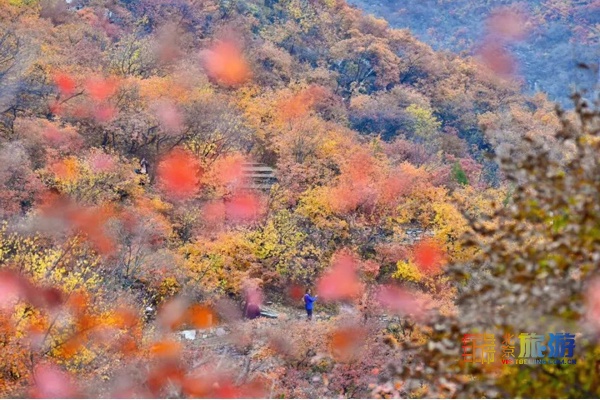 坡峰岭也是非常适合秋日登高的地方,这里的登山路很好走,而且无论怎么走,只要沿着路,就不会迷路,沿着石阶一路向上,沿途是红彤彤的黄栌,路过半山腰的云上石屋,在彩叶的掩映下,不像人间,更像仙境。