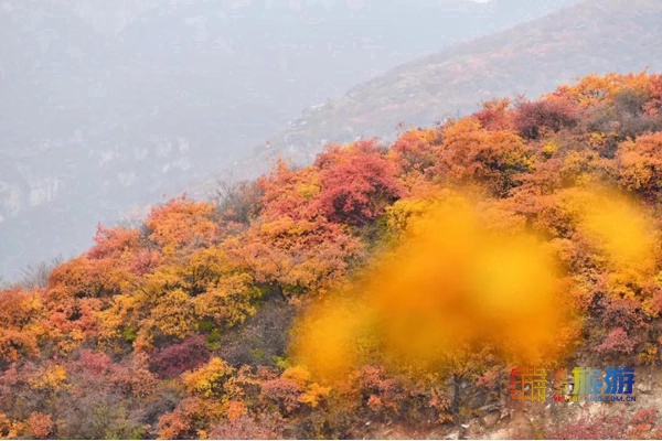 黄栌叶绽红胜火,幽谷层峦美如仙,坡峰岭这漫山遍野的红叶让这里成为一片仙境,醉了无数的游人。与其他地方三两株不同,这里的红叶真的是染红整片山,就像上天打翻了的调色盘,给这片山林,涂上最醒目的色彩。