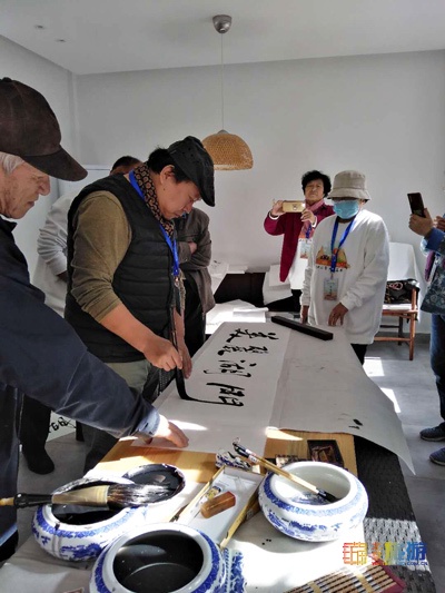 本次活动邀请了昌平老年大学艺术家、昌平幸福家庭、幸福街坊代表、媒体等五十余人共同参与。在湖门村草木缘居民宿内,由五组艺术家分别围绕苹果、丰收、延寿山、银山塔林、幸福家庭、幸福街坊、重阳节等不同主题进行了文艺创作。民宿亲近田园,听蛙鸣蝉叫,与青山绿树为邻,与草木结缘,在各院子里的果木而命名的老房舍庭院中,激发了在场艺术家们的创作灵感。