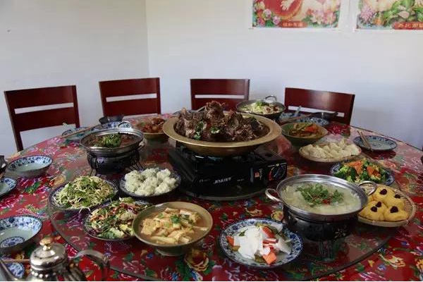 盔锅牧骨是边炖边吃的,大块的猪、牛、羊骨头,辅以时令鲜蔬,再配上延庆特色主食,肉量足、蔬菜健康、主食丰富。