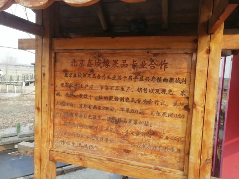 合作社位于昌平区兴寿镇西新城村南,是一家集果品生产、销售以及观光、采摘、垂钓、餐饮、农业科普教育于一体的股份制农民专业合作社。