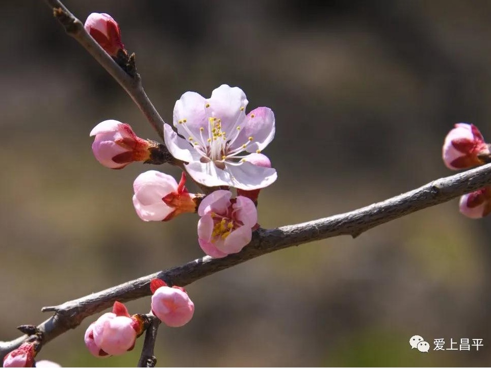路边的野山杏生机勃勃,粉白的花朵挂满枝头,引来蜜蜂在花间飞舞嗡鸣。