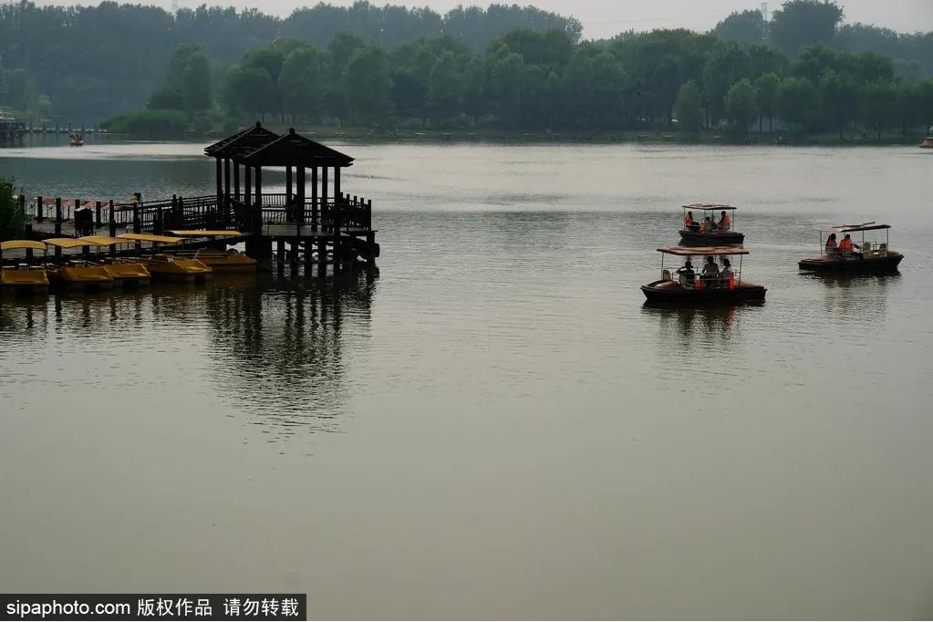 园内除了一湾碧水,还围绕河岸建有栈道以及3万平方米的休闲广场,从空中俯瞰,整个公园,犹如一条蓝绿交织的水晶项链,装点着西周燕都遗址。