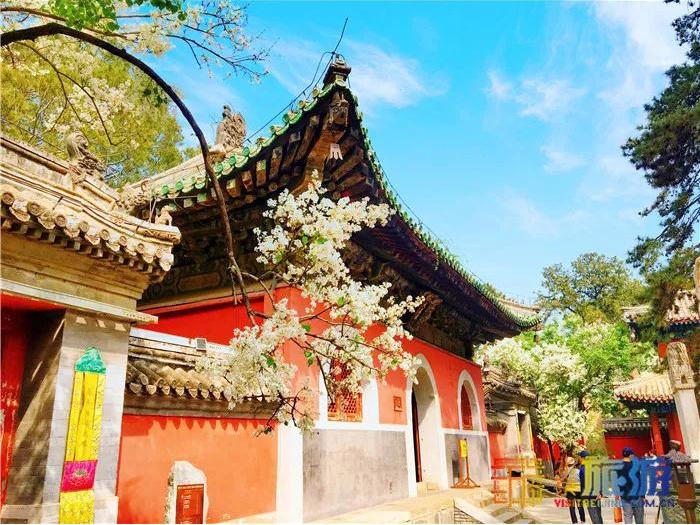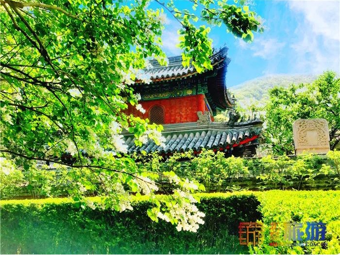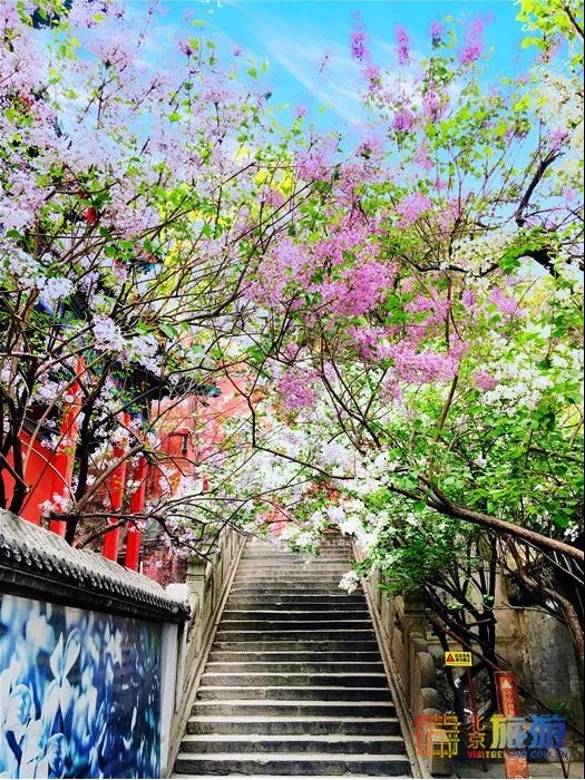 牡丹院和千佛阁中间有一处台阶,两侧是白色、紫色丁香,不少游客在这合影,可以说是一个拍照打卡地啦。