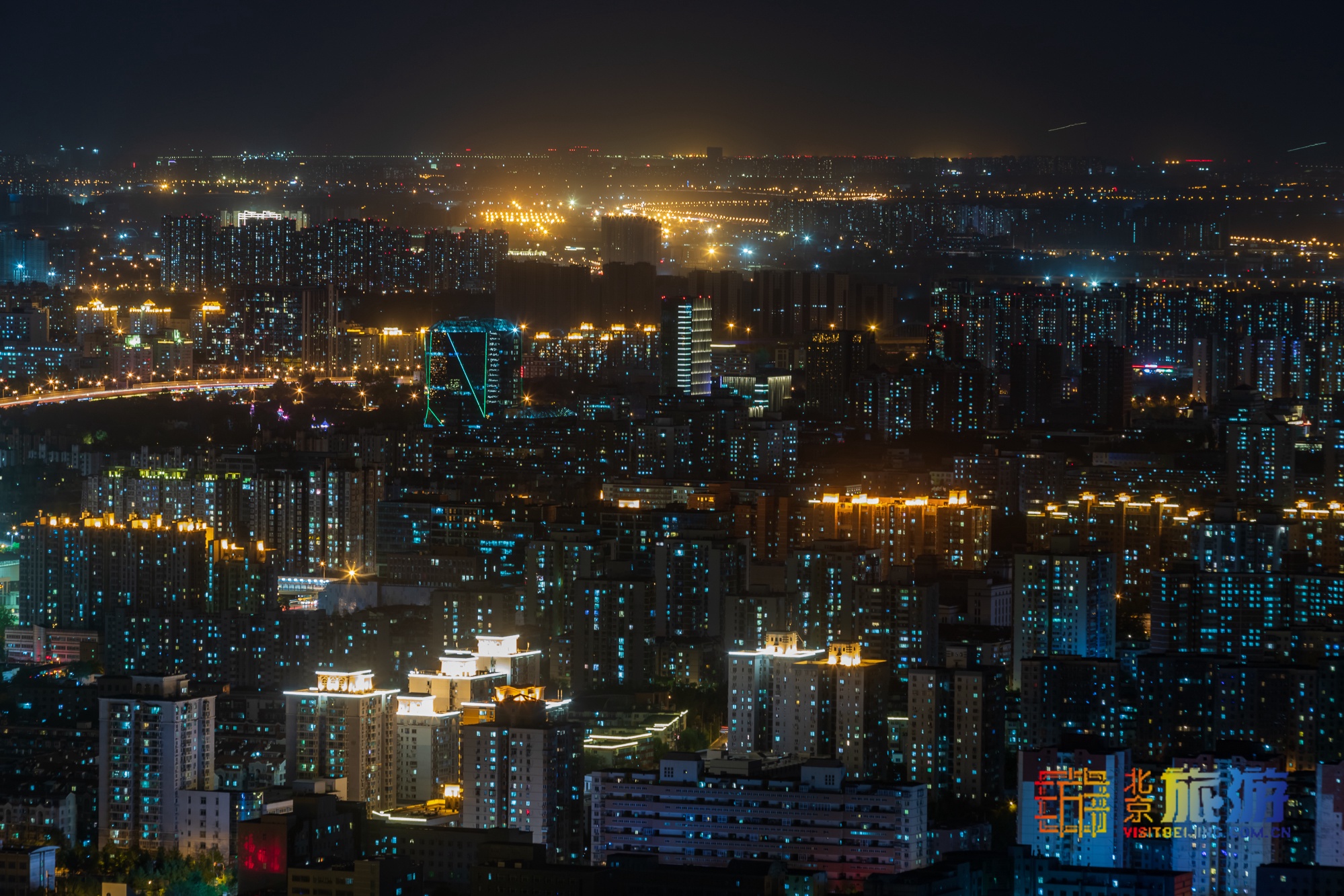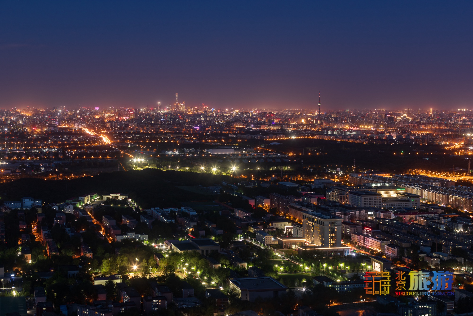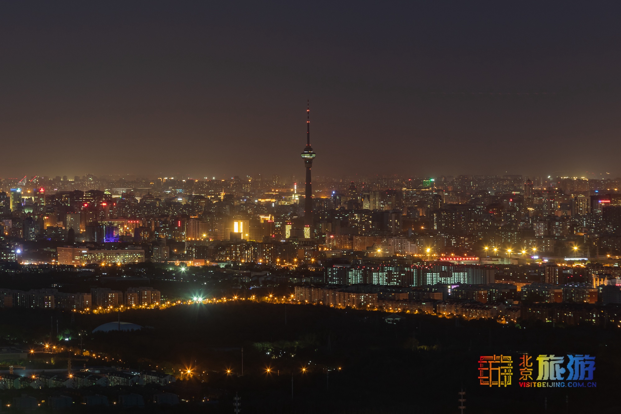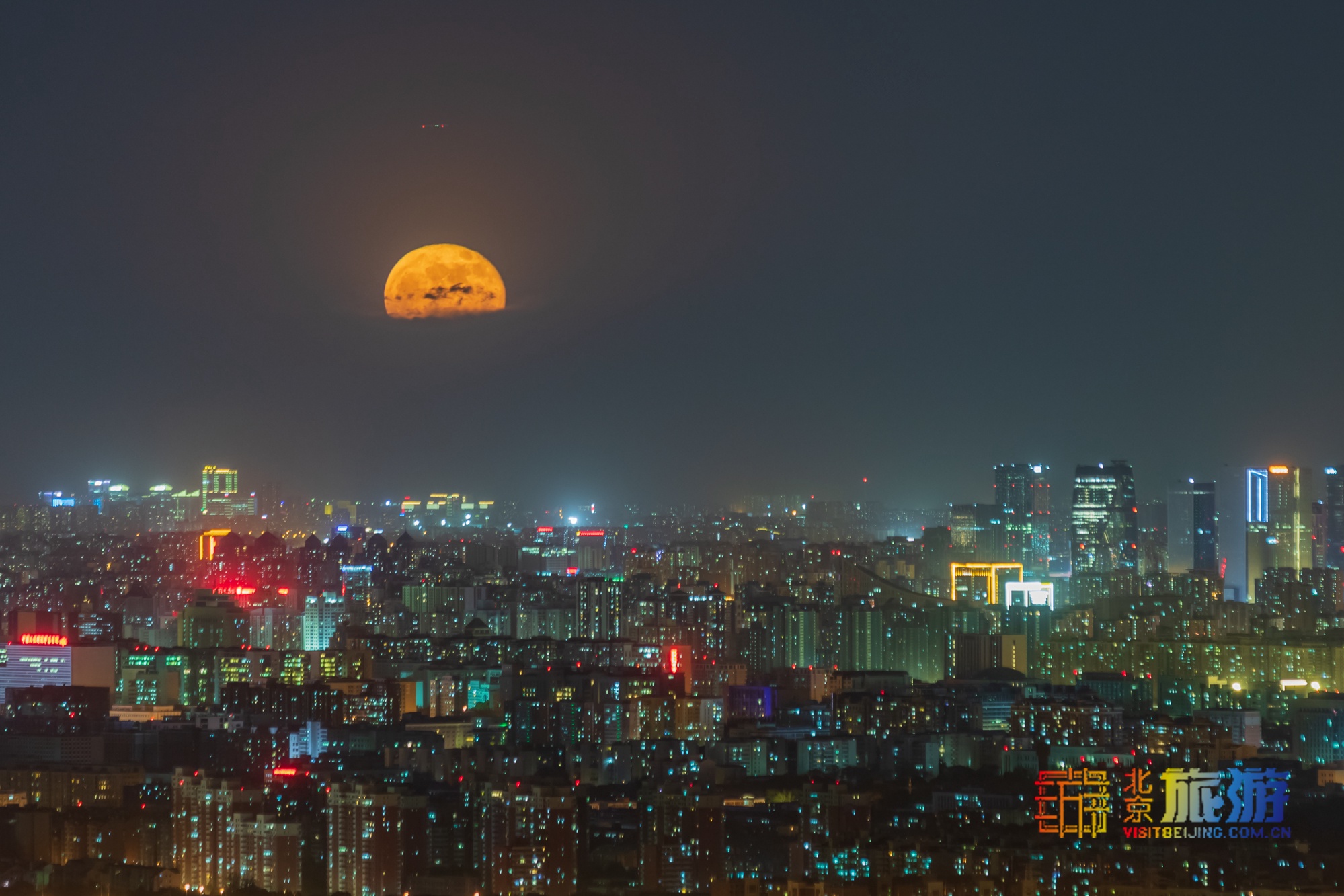2021年5月27日,阴历四月十六,北京西山-虎头山,夜空中,明月高悬,“十五的月亮十六圆”;灯光璀璨,京城美轮美奂。
