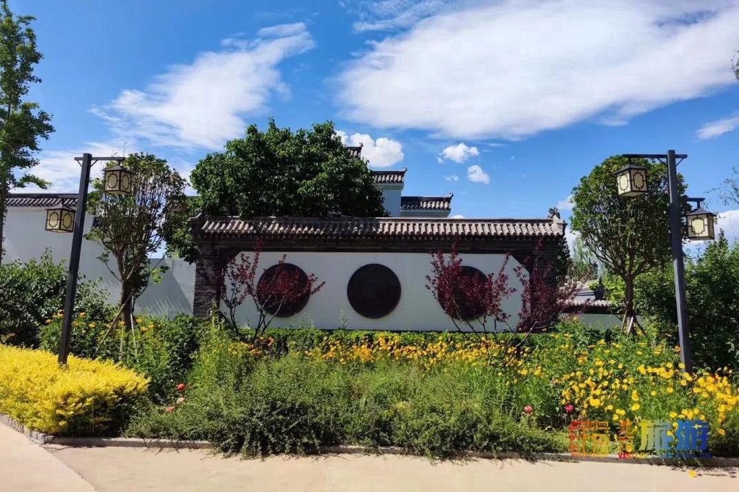 一汪碧水映蓝天,柳影水车入画来。粉花绣线菊、金鸡菊等夏花,将这里打造得宛如世外桃源一般,是民宿、更是孩子们的游乐场。