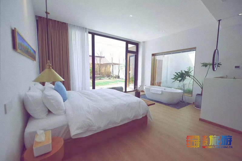 夏天的清晨,还没有到日上三竿的时候,这里还是一片清凉,微风吹起,荡漾起阵阵花香。这时候,煮一壶茶,和朋友“坐在庭院中喝着茶,看着天,你会觉得这就是诗,这就是诗意的生活。”忽如一夜春风来,千树万树梨花开。虽没有满园的梨花,可是过着惬意的生活,这鸟语花香,这泥土的气息,这微醺的阳光和温热的茶水,不正是“采菊东篱下,悠然见南山”中的极乐世界么?小院有8个设计别致的民宿房间。3个由老屋改造而成,1个二层树屋,1个日式榻榻米,2个美式全景房,1个独立的“地主跨院”。不同的装修风格,同样的视觉感受,那就是我们与自然拉近了距离。这里很适合长居在市区的家庭,偶尔在这里踏春,野餐,回归自然,回归人性。