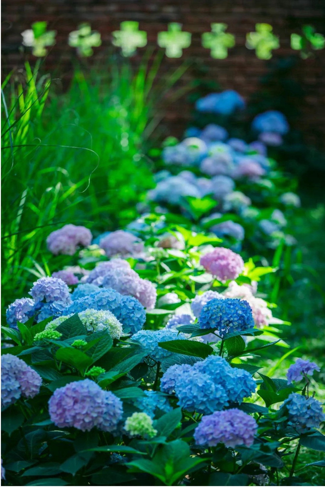 黄栌花开另一特色就是成片成片的绣球,6月盛放10月方休,因此得名“无尽夏”,花朵会因为土壤有所变化,但都是粉的蓝的大棒棒糖般好看。