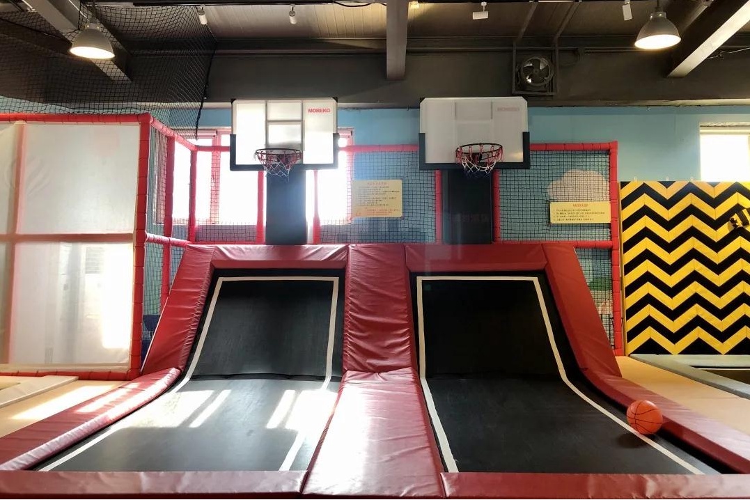 蹦床区,结合飞人灌篮、粘人蜘蛛墙、泡泡球,让孩子自由地在空中跳跃,腾空挂在魔术贴墙上,和小朋友们一起碰碰撞撞滚来滚去,好不快活。