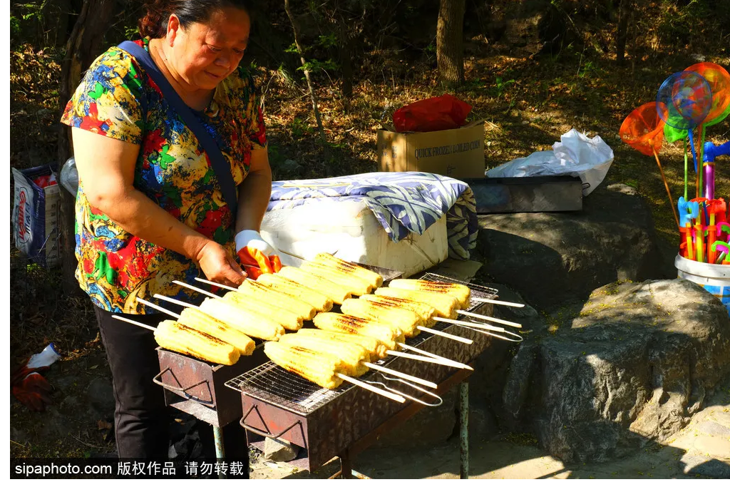 烤玉米的香气弥漫在空气中,阿姨的叫卖声,声声入耳~勾起了游人肚子里的馋虫。
