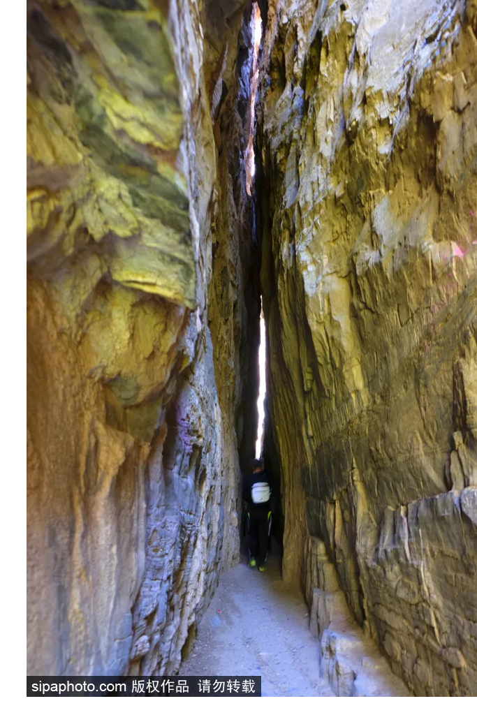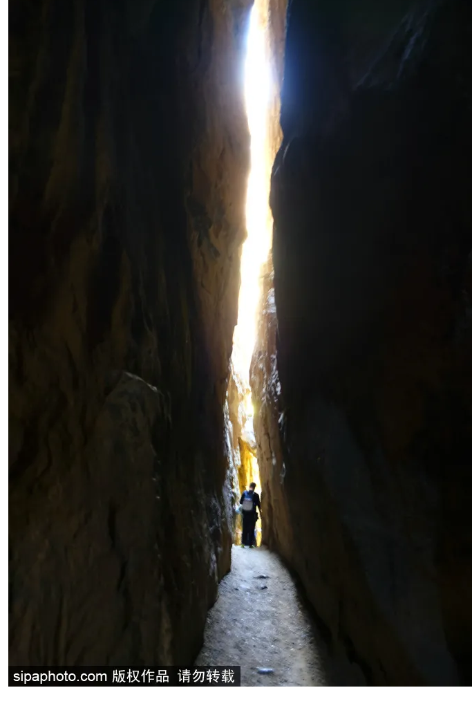 耸立在峭壁之中的一线天,其直立之处如刀劈斧砍一般,是孤山寨的标致性景观。