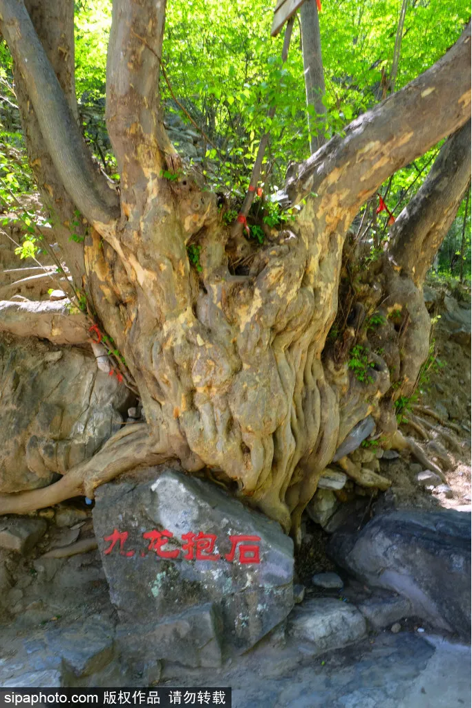路旁有一棵老树,根部如同九条龙缠绕着石头,所以又叫“九龙抱石”,还挺形象~