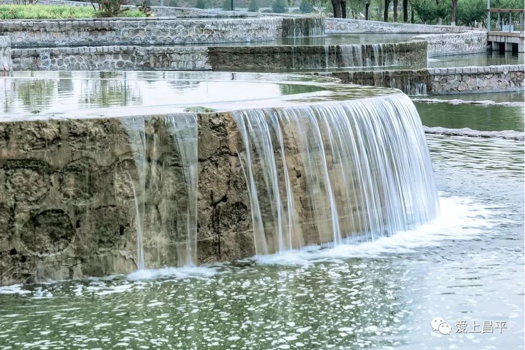 叠水池,最美曲线,俯瞰叠水池,宛若“梯田”,依地势层层弯曲,错落有致的水面倒映出蓝天白云,树木,天光云影般梦幻之境恍若隔世。