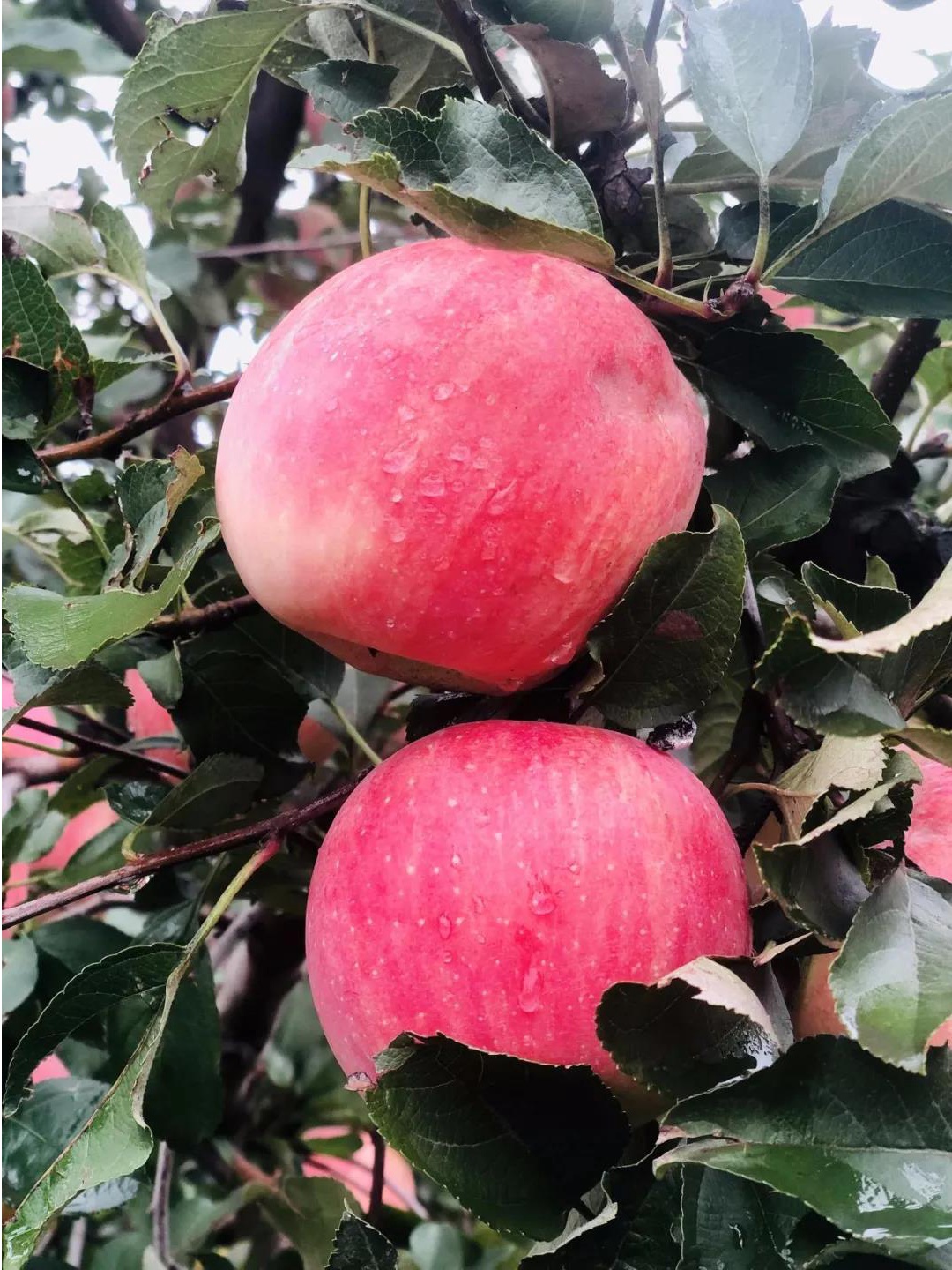 由于今年昌平经历了几次雹灾,极个别的苹果上有坑坑洼洼的小伤。但是小编尝过啦,苹果的口感没有受到任何影响,依然是脆甜可口。您来采摘的时候也不用担心。