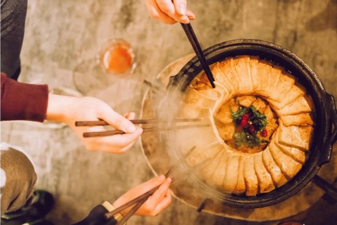除此以外,招牌火锅也暖心安排上了,张北酸菜二两,各式干菜入锅,小火慢煨,炭火正旺火盆一放,待汤汁渐浓,就可以开锅啦!满口都是精华,暖心又暖胃~