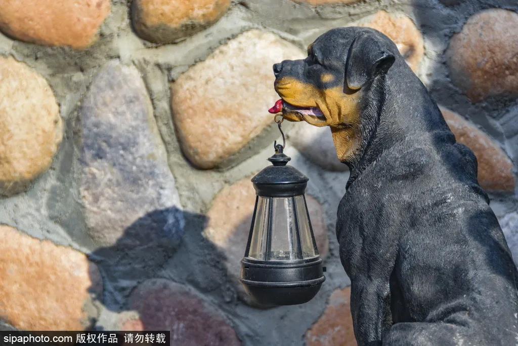 晴朗的天空下,房檐里晾晒着收获的玉米,看家的忠犬等待主人早日,平安归来。