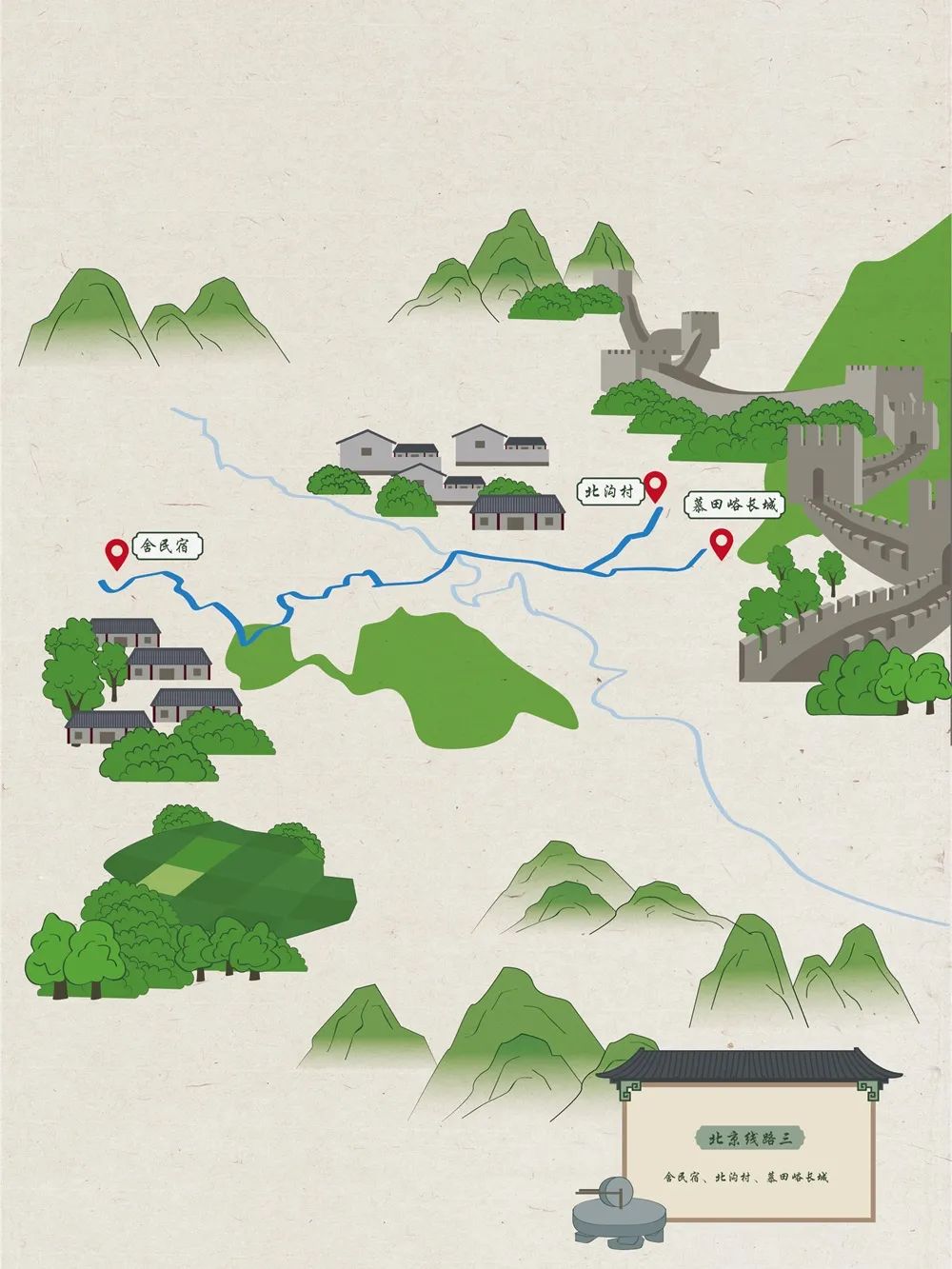 今天小北向您推荐民俗长城之旅:叁舍民宿—北沟村—慕田峪长城。