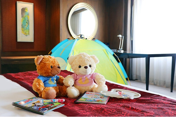 专属礼遇:客房免费升级至儿童帐篷主题豪华间、免费客房加床、迷你儿童天地、恒温泳池及健身房、以及用车和店内餐厅八五折优惠,入住还送儿童惊喜礼物哦!