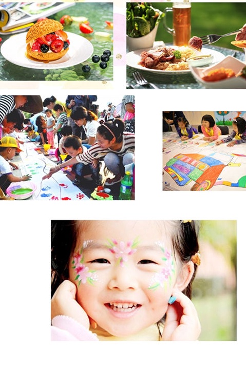充满阳光的西餐,孩子们最喜爱的暖暖味道,免费环保彩绘画脸和亲子绘画比赛,瑞士进口冰淇淋买2赠1。