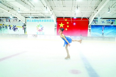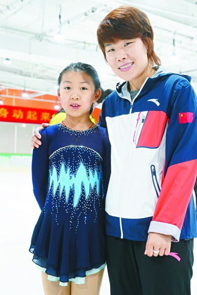 奥运冠军周洋来到滑冰馆鼓励更多的青少年朋友参与到冰雪运动中来。